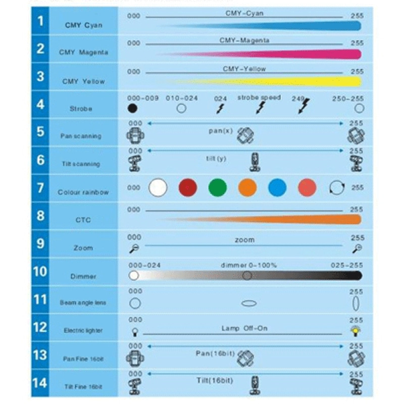 Управление: DMX-512 (10 каналов), электронное меню с LCD экраном