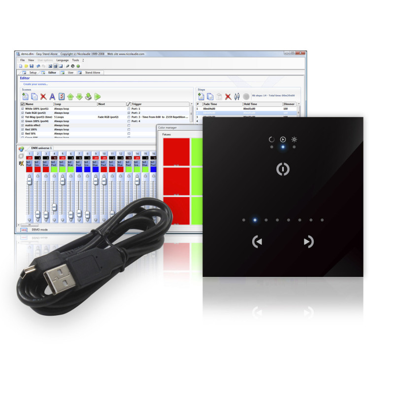 - Модель:DMX контр настен, сенсорный, 128DMX кан, (USB каб+CD+бп)