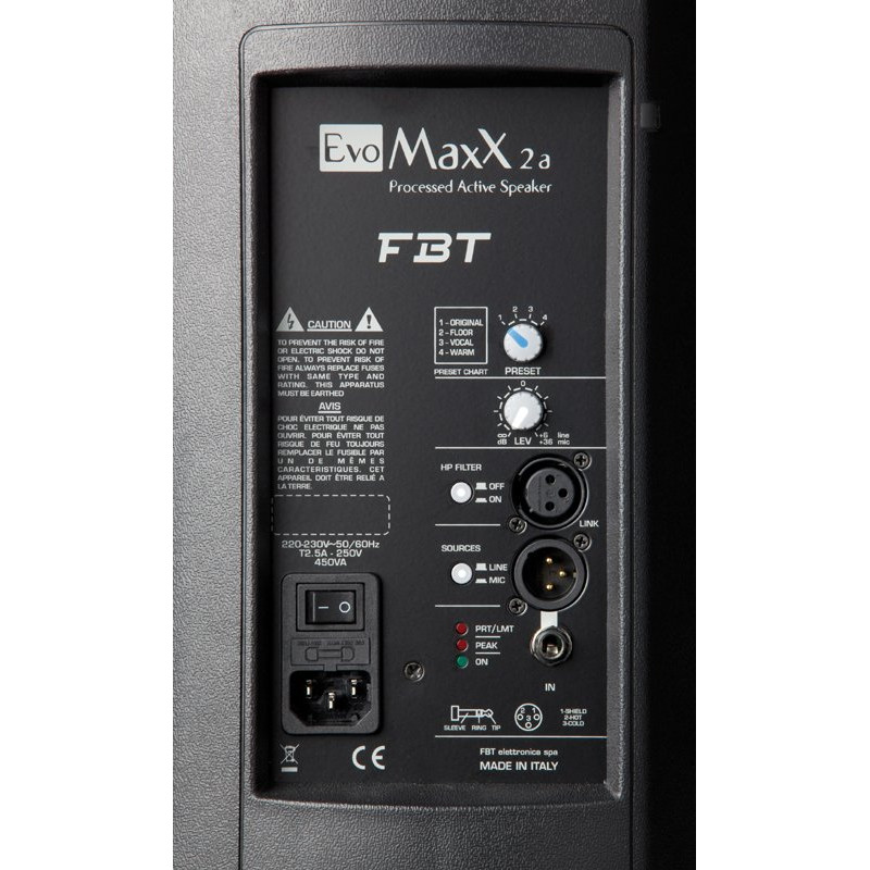 Звук системы более естественный, а 4 новых пресета DSP позволяют производить быструю динамическую эквализацию и защищают динамики от перегрузки. Усилитель системы относится к классу D, благодаря чему он имеет высокую мощность и эффективность и низкий уровень собственного шума. Мощность системы в непрерывном режиме - 500 Ватт, а в пиковом режиме до 1000 Ватт. Здесь использованы низкочастотный динамик диаметром 10 дюймов с 2-дюймовой катушкой и высокочастотный динамик диаметром 1 дюйм с 1,4-дюймовой катушкой. Частотный диапазон системы - от 58 Гц до 20 кГц, максимальный уровень звукового давления - 122,5 дБ. Кабинет системы выполнен из полипропилена и допускает установку как в качестве панорамы, так и напольного монитора. Активная акустическая система FBT EVOMaxX 2A - качественная и практичная звукоусилительная система.