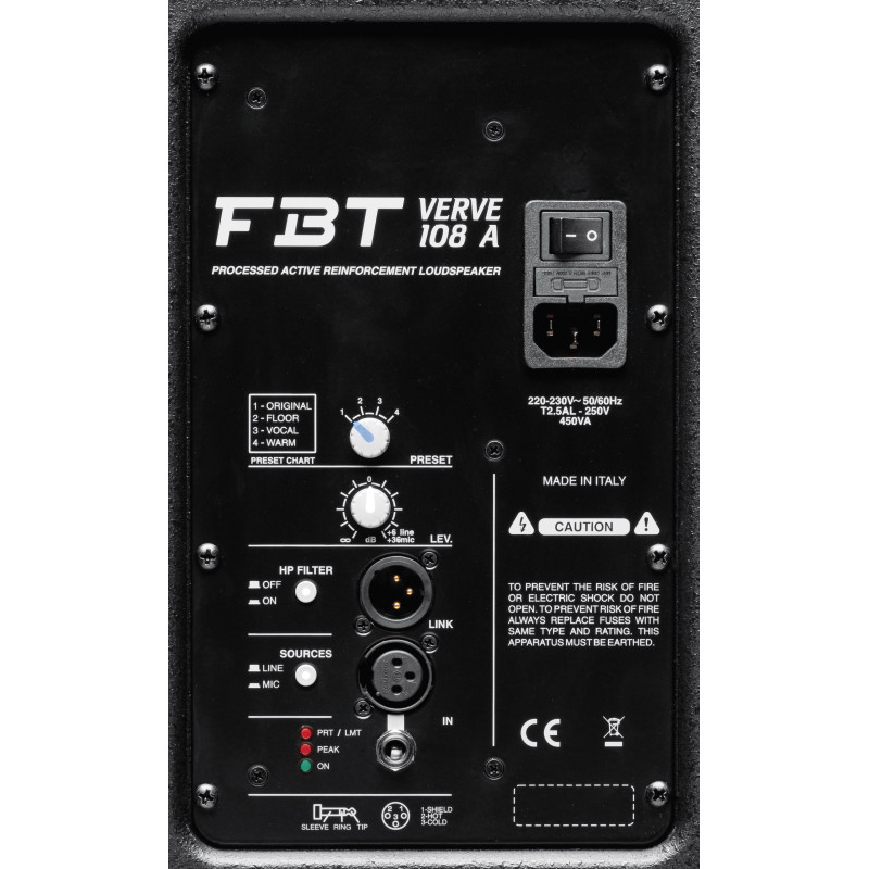 FBT Verve 108A активная акустическая система, двухполосная, би амп, дизайн кабинета бас-рефлекс.