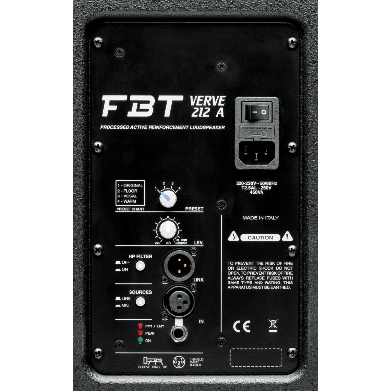 - На контрольной панели расположены: сбалансированный XLR / Jack вход и XLR LINK OUT, ручка громкости, селектор пресетов, HP Filter, 3 индикатора состояния акустической системы.
