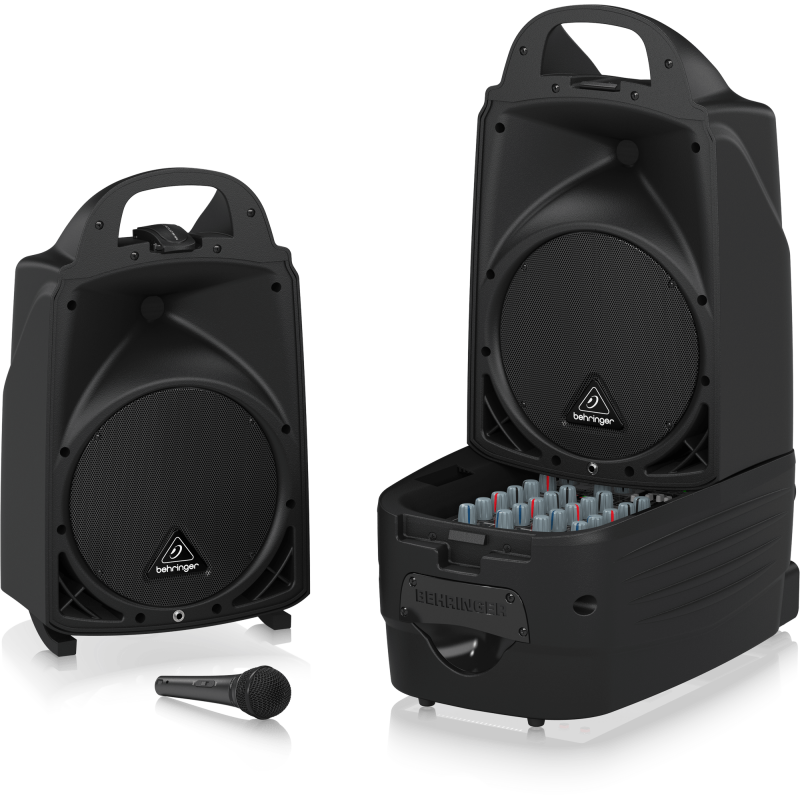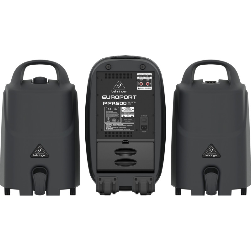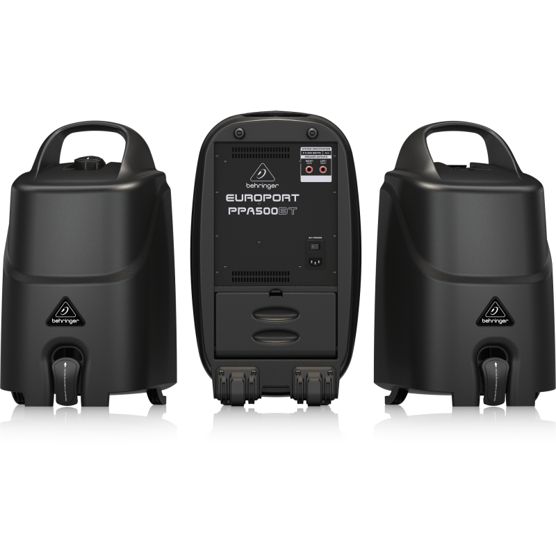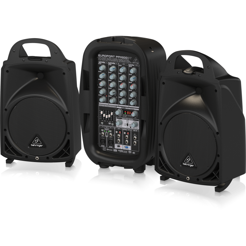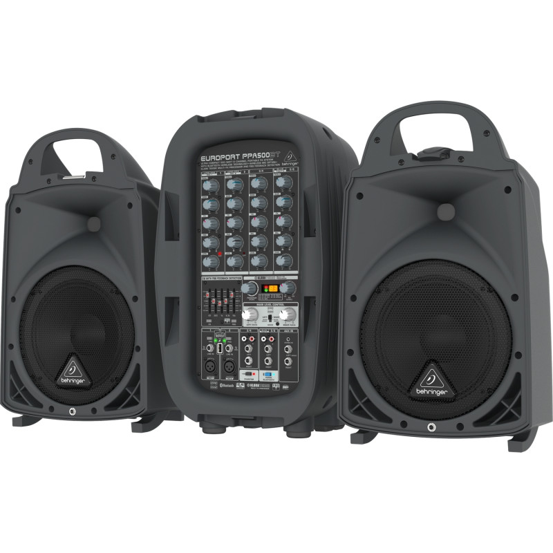 BEHRINGER PPA500BT комплект акустики имеет все, что нужно для озвучивания средних и большого размера помещений, а именно легкий вес, возможность подключения беспроводных микрофонов, 6-канальный микшер-усилитель к которому можно подключать два микрофона, МР3 плеер и два стерео или 4 моно музыкальных инструмента. И все это можно моментально настроить, используя 2-полосный канальный эквалайзер и 5-полосный графический эквалайзер с FBQ.