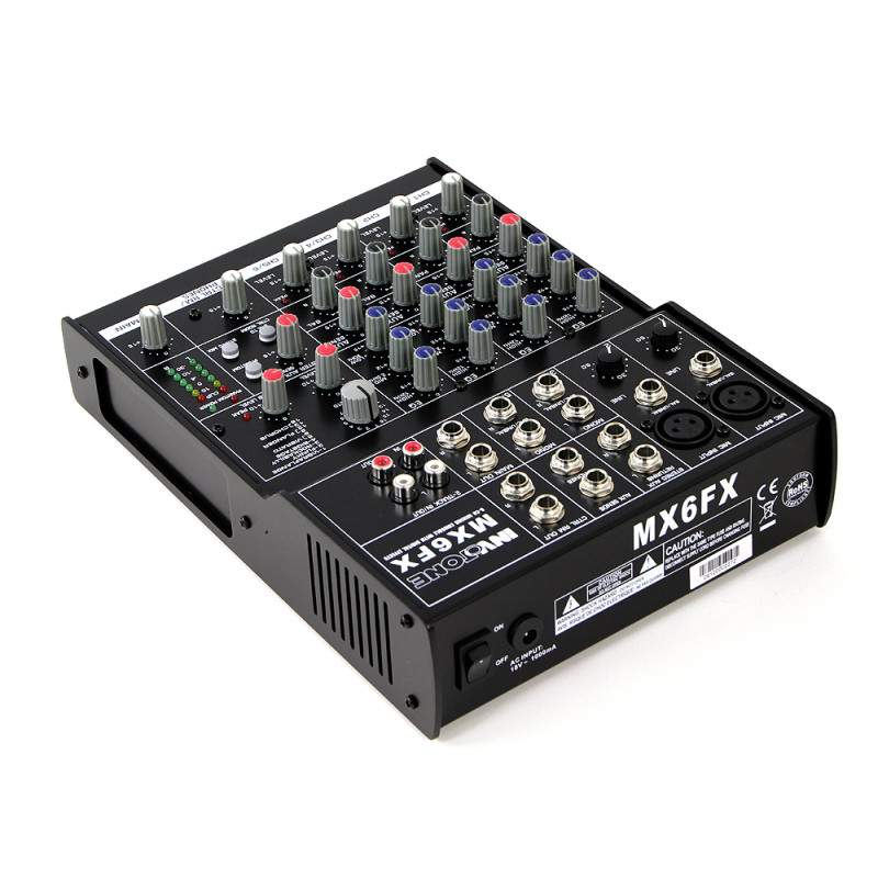 Микшерный пульт - 2 микрофонных входа, XLR и балансный Jack, 2 стерео входа с балансными TRS джеками. На микрофонных каналах ручка Gain и фантомное питание + 48 V, 3- полосный эквалайзер на всех моно и стерео каналах, 1post fader Aux для посыла эффектов c переключением в режим pre для посыла сигнала в монитор, 2-Track IN/OUT с возможностью назначения выхода в Main Mix или CTRL Room out. Встроенный цифровой процессор эффектов с 16 эффектами. Балансные выходы как на джеках так и на XLR.