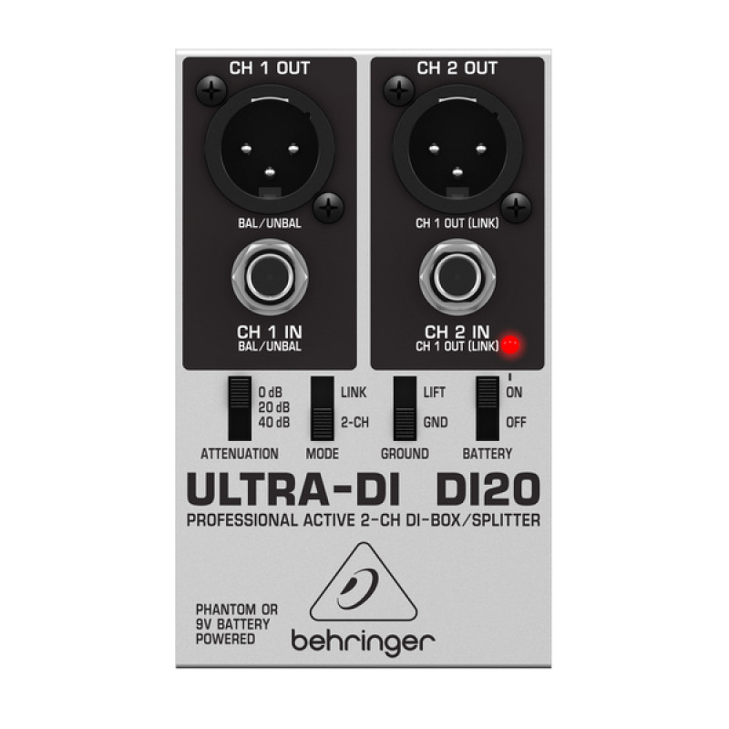 ULTRA-DI DI20 – инновационный активный 2-канальный DI-бокс/сплиттер, с помощью которого можно снимать сигнал непосредственно с несимметричного высокоомного выхода - скажем, электрогитары или баса - и направлять его прямо на микшерский пульт или рекордер. Его место в «гиг бэге» любого музыканта (особенно гитариста или басиста), а также среди стандартного набора оборудования звукоинженеров студий, радио, концертных или зрелищных мероприятий, или инсталляционных техников.