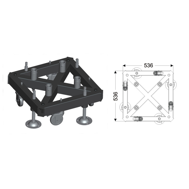 - Стальное основание с домкратом на колесах со стояночным фиксатором (кол-во колес - 4шт);