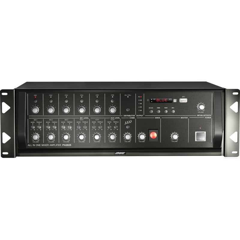 ABK PA-2825 - 6-зонный микшер-усилитель с регулировкой громкости по зонам, а также с пэйджингом, USB и Bluetooth.