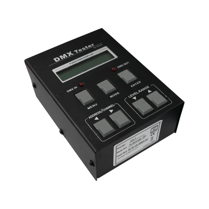 ACME CA-T/DMX TESTER устройство тестирования DMX линии, и назначения DMX адресов, позволяет быстро установить DMX адрес индивидуально, на группу, либо на все приборы одновременно (функция работает только для приборов ACME), 3 режима контроля уровня DMX сигнала: в процентах, сегментный, либо числовой, для вход/выход сигнала, тестирование на разрыв DMX сигнала, функция энергосбережения, яркость LCD дисплея регулируется от режима активности, батарейки AA (либо аккумуляторы) в комплект не входят.