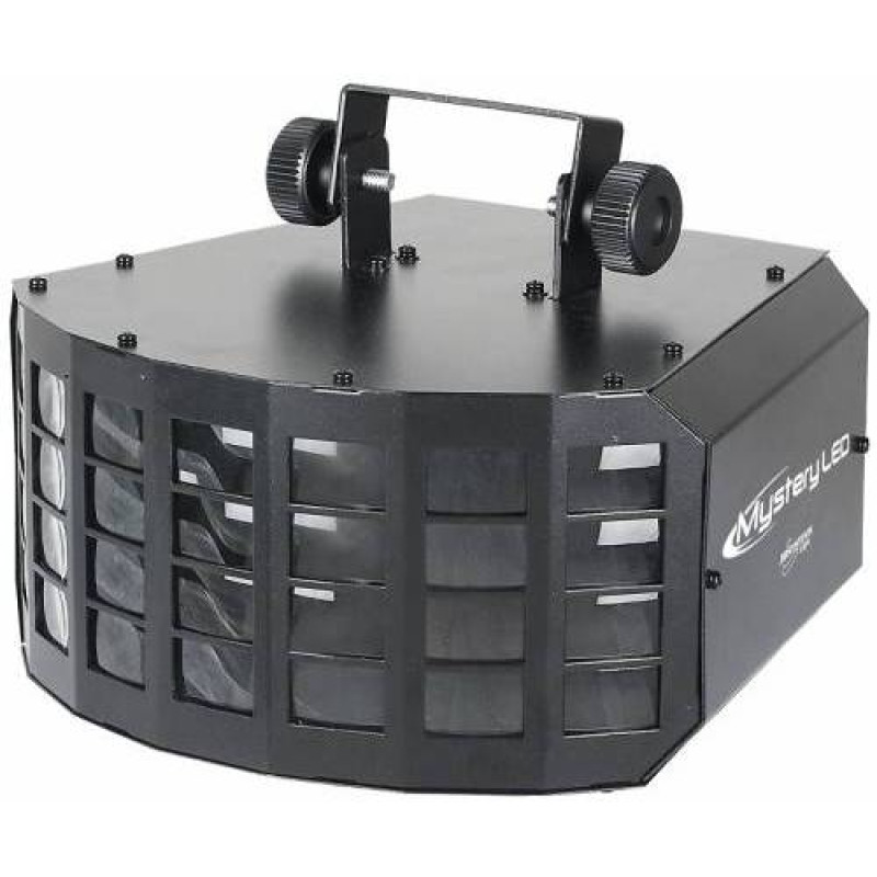 мощный эффект псевдолазер 28 лучей . 2х3Вт четырехцветные матрицы Cree, 3 канала DMX, диммер 100~0% и строб эффект, светодиодный дисплей, питание:100~240В, потребляемая мощность:34Вт, габариты:269х271х140мм, вес: 3.8кг