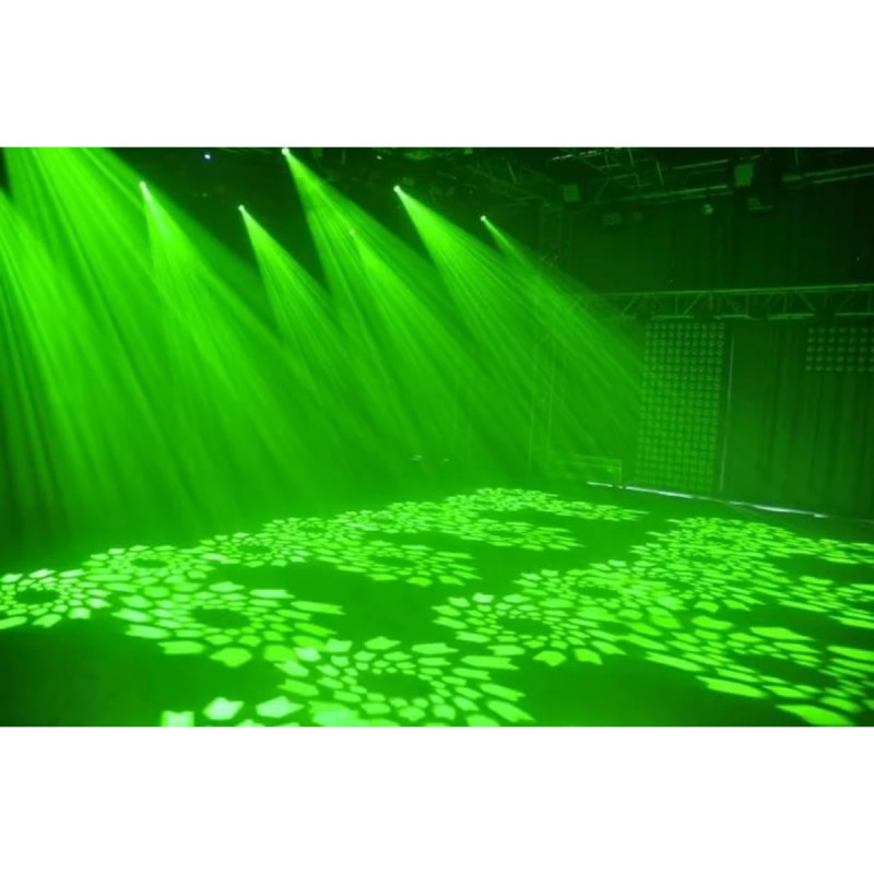 встроенные шоу для работы в режиме звуковой активации, режим Master/Slave, 7 вращающихся гобо+ открытая позиция, 7 цветов+ открытая позиция.