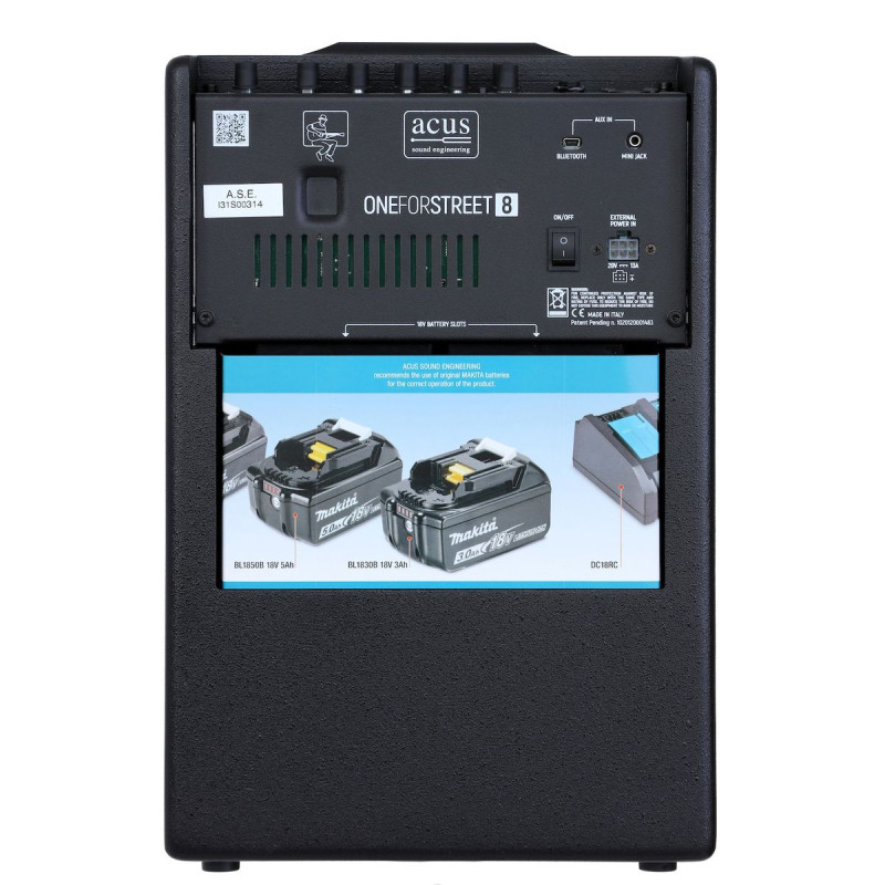 ONEFORSTREET 8 имеет возможность автономной работы благодаря остроумному решению ACUS - возможности установки в комбо 18В аккумуляторов Makita или совместимых с ними (приобретается отдельно). Такой подход позволяет не носить с собой вес аккумуляторов, когда они не нужны, а также иметь для длительной автономной работы какой угодно запас сменных аккумуляторов.