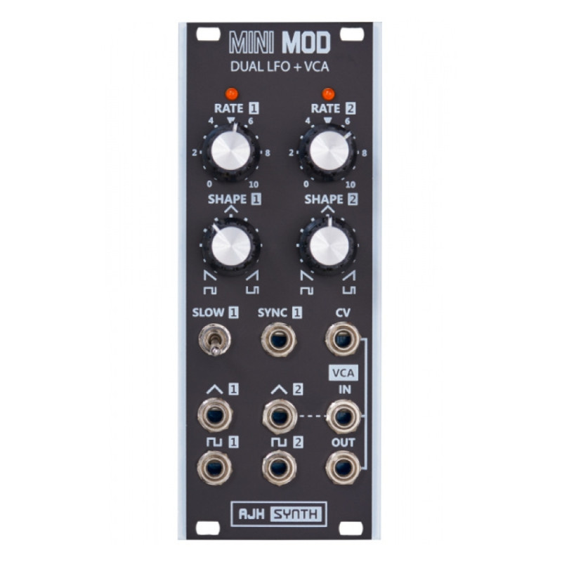 AJH SYNTH MiniMod Dual LFO + VCA black - Двойной LFO с формированием волны, входом синхронизации и VCA со связью постоянного тока