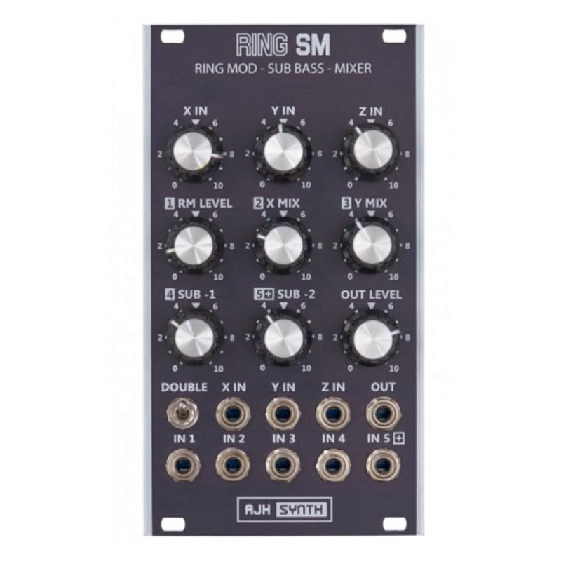 Ring SM представляет собой совершенно универсальный модуль, который имеет три входных дискретных транзистора кольцевого модулятора, двухфазные синусоидальные генераторы Sub Bass. кроме того, он может использоваться как пятиканальный дискретный транзисторный микшер с функцией clipping.