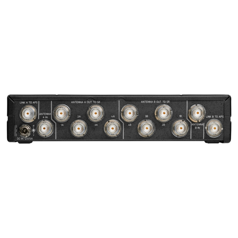 Способен работать одновременно с 4 приемниками от пары антенн и, кроме того, обеспечивает питание для всех подключенных приемников посредством кабелей BNC. Сплиттер работает в широком диапазоне частот от 470 до 952 МГц.