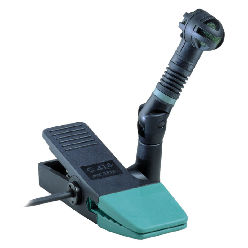 Частотная характеристика гиперкардиоидного конденсаторного микрофона С 418 специально настроена для озвучивания барабанов и перкуссии. С помощью 2-позиционного вращающегося держателя с виброустойчивой обрезиненой прищепкой микрофон ,:танавливается на любом барабане или другом ударном /-струменте, Дополнительную защиту от удара барабанной 'уочкой и вибраций обеспечивает эластичная подвеска капсюля. Дополнительный шарнир позволяет достаточно точное расположение микрофона на инструменте. o B-Lock версия - с 1/8" мини джеком с резьбовой фиксацией для использования с автономным блоком питания В 29, с адаптером питания МРА II, либо с портативным передатчиком радиосистемы WMS 300. o L-версия - с миниатюрным 3-контактным разъемом для подключения к портативным передатчикам радиосистем WMS 40/60/61''ВО'"'