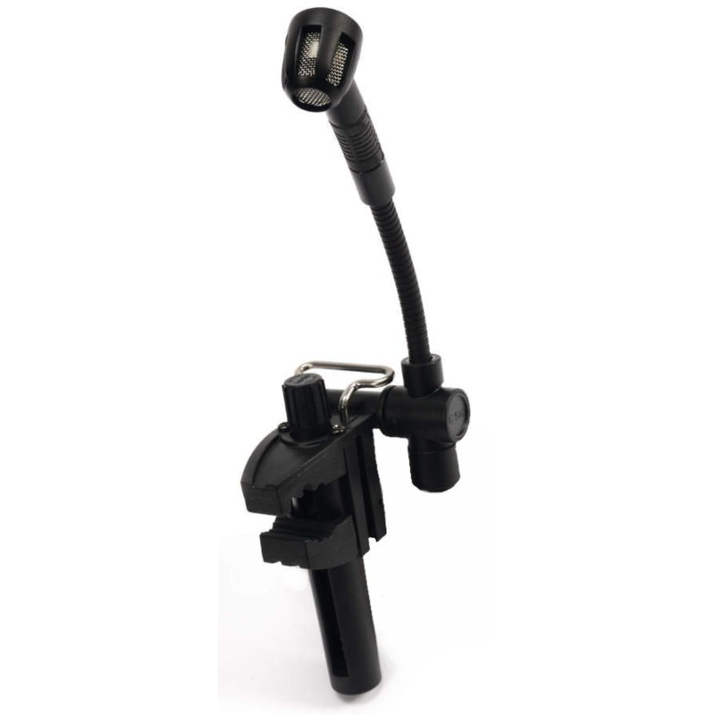 Кардиоидная диаграмма направленности снижает чувствительность микрофона к звукам соседних инструментов. Струбцина с длинным ходом позволяет фиксировать микрофон на ободе любых барабанов и перкуссионных инструментов. Шарнирное крепление с фиксатором позволяет зафиксировать держатель капсюля под любым нужным углом. Специальный защелкивающейся стабилизатор держит «гусиную шею» в определенном положении. Есть встроенный переключаемый обрезной НЧ-фильтр для подстройки частотной