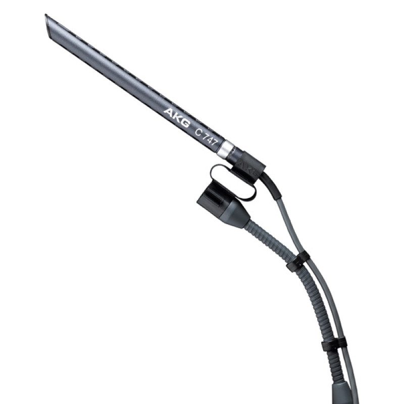 AKG C747 V11 – профессиональный конденсаторный микрофон-пушка, капсюль которого обладает плоской АЧХ и превосходным отклонением внеосевых звуков. У микрофона гиперкардиоидная диаграмма направленности.