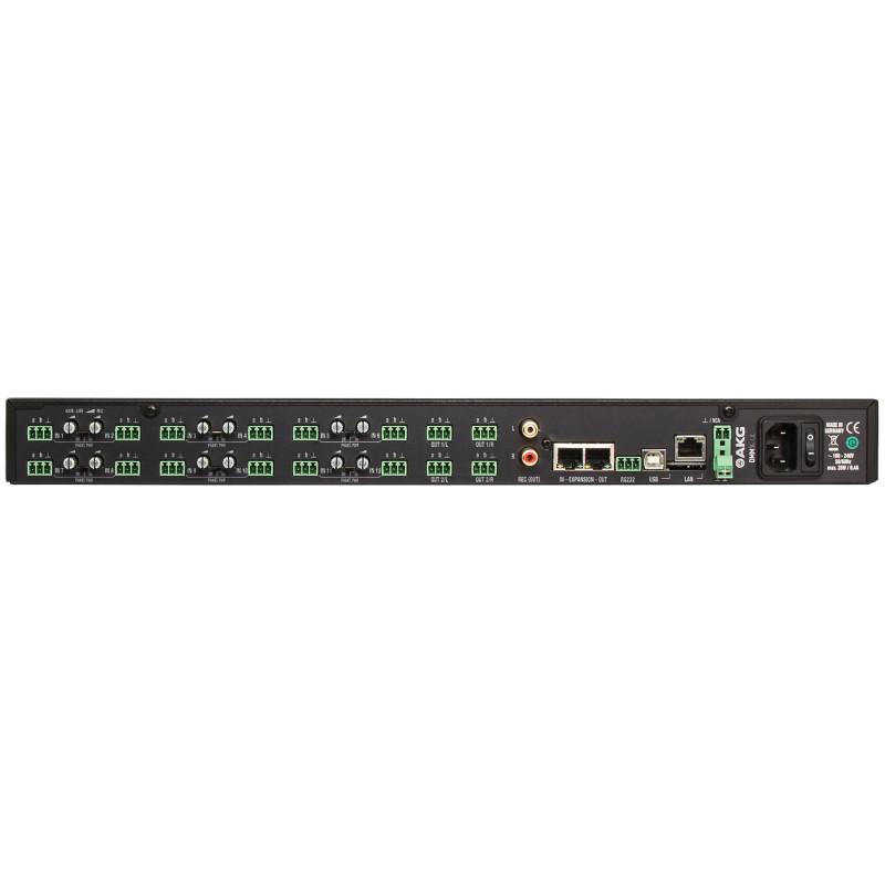 Цифровой микшер AKG DMM14 UL оборудован 12-полосным графическим еквалайзером, что позволяет осуществлять настройку потоков аудио в соответствии с конкретными требованиями.