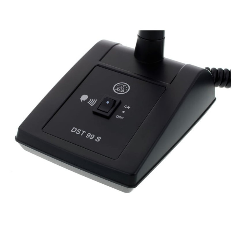 Частотная характеристика DST99S приспособлена для работы с человеческой речью, что позволяет добиться оптимальной разборчивости. Также это позволяет отсекать все, что не должно попасть в зону охвата высокого коэффициента воспроизведения. Подавление ненужного шума окружающей среды срабатывает прежде, чем обратная связь дает о себе знать. Цельнометаллический корпус гарантирует долгий срок службы микрофона даже при ежедневном использовании. DST99S устанавливается на настольном штативе с переключателем «включено-выключено», и с витым кабелем с разъемом XLR.