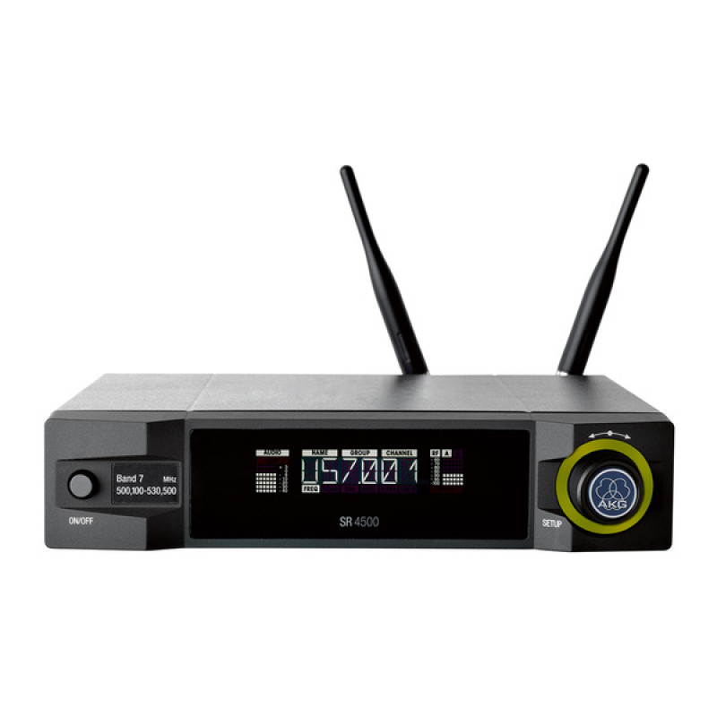 Одним из элементов AKG WMS4500 D7 Set BD1 является приемник SR4500. Это аналоговый беспроводной приемник, который славен предельной простотой использования с его автоматической функцией установки и сканированием радиочастот в окружающей среде. Репетиционный режим устройства дает возможность пользователю отслеживать информацию о качестве сигнала. Программируемый монитор состояния в целом отображает всю необходимую информацию о системе и возможность точной идентификации времени автономной работы является одной из главных особенностей товара. Широкий же спектр разветвителей антенн, беспроводных антенн и источников питания, подключаемых к SR4500, позволяет расширить его возможности.