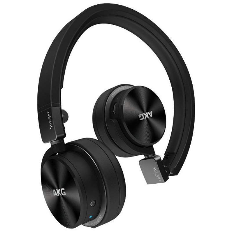 Главной особенностью AKG Y45 BT является наличие Bluetooth-приемника, благодаря чему для воспроизведения музыки с совместимых смартфонов или планшетов кабельное соединение не требуется. Наушники поддерживают технологию простого беспроводного подключения NFC, и для установки соединения с совместимым гаджетом их достаточно просто поднести друг к другу. Все необходимые органы управления (включения, регулировки громкости, ответа на телефонные звонки на подключенном смартфоне, начало и остановка воспроизведения композиций) расположены на правом наушнике. Здесь же имеется удобная светодиодная индикация режимов работы, а также величины оставшегося заряда аккумулятора. На левой чашке имеется USB-разъем для зарядки наушников. Для получения при передаче по Bluetooth звука наивысшего качества в данной модели имеется поддержка улучшенных аудиокодеков aptX и AAC. При их задействовании с совместимым источником сигнала можно получить звучание, сопоставимое по всем основным параметрам с CD-Audio.