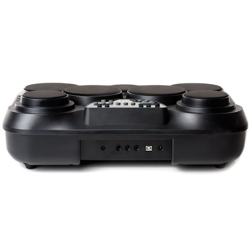 Alesis CompactKit 7 имеет панель управления, на которой находятся ЖК-дисплей и кнопки различных функций. На дисплее отображаются все параметры выбранных настроек, которые выбираются с помощью кнопок. Включение записи, метронома, эффекта реверберации, регулятор громкости – все это вы найдете на панели управления. Также устройство обладает функцией подсвечивая пэдов.Alesis CompactKit 7 оснащена встроенным громким динамиком, выходом на наушники с разъемом 1/4" TRS, при подключенных наушниках встроенная акустическая система отключается, что позволит заниматься, не беспокоя домочадцев и соседей. Кроме того в данной установке есть вход для внешнего источника звука на разъеме 3.5 мм miniJack и существует возможность автономного питания от 6 батареек типа С. Вы сможете взять ударную установку с собой куда угодно благодаря ее небольшому весу и малым габаритам. Инструмент поможет скрасить отдых или долгую поездку, с ним можно развлечь и удивить друзей, а также заниматься и репетировать в любое время. В комплекте поставляются 2 педали для бас-бочки и хай-хэта, полноразмерные барабанные палочки и адаптер питания. Батарейки в комплект не входят.