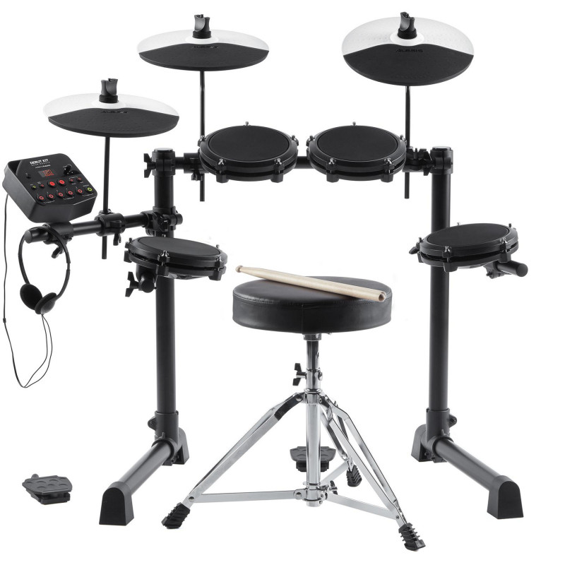 Выход 1/4" Jack TRS для наушников или для подключения к монитору, вход 1/8" Jack TRS для внешнего плеера. Совместимость с приложением для тренировок Melodics™. В комплекте: стул, наушники и барабанные палочки.