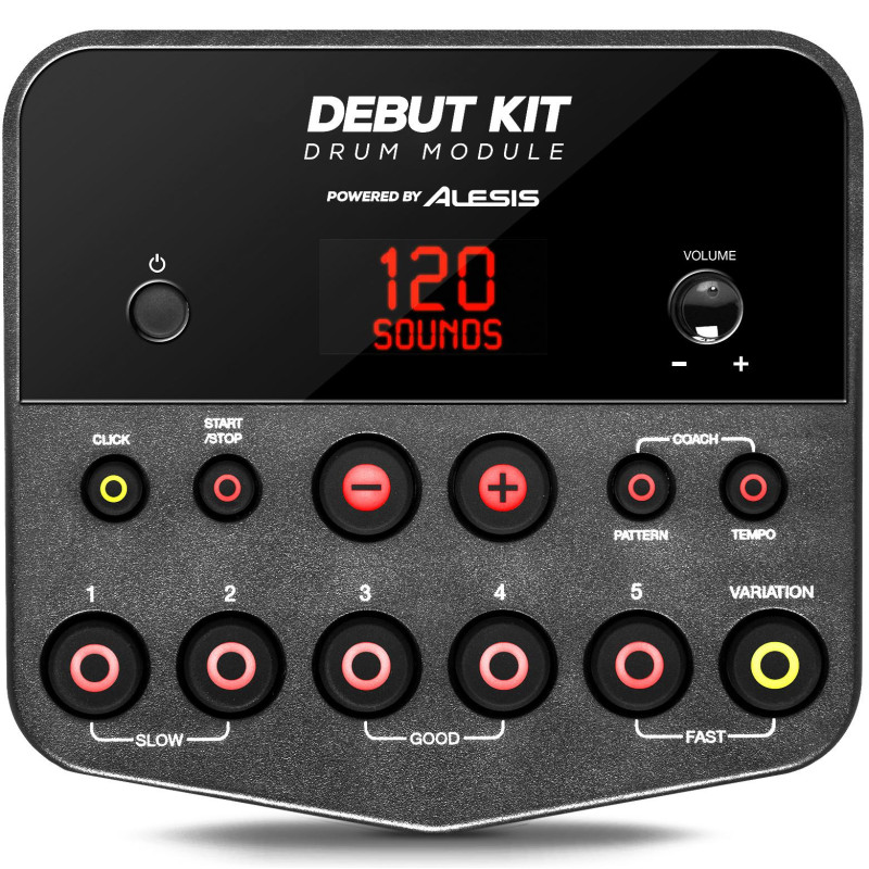 Барабанный модуль содержит 10 классических и современных пресетов ударных установок, специально разработанных Alesis. Эти наборы содержат 120 отдельных звуков ударных и используют технологию Intelligent Dynamic Articulation™ для обеспечения невероятно реалистичного звучания и играбельности. В модуле также есть встроенный тренер ударных, включающий 30 треков для воспроизведения и специально разработанные ритмические упражнения, которые помогут развить и улучшить навыки игры.