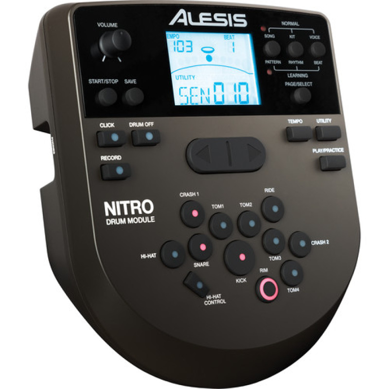 Звуковой модуль Nitro предлагает 24 встроенных набора ударных установок, которые позволяют играть в любых стилях музыки. Наборы имеют 385 тембров, которые можно использовать в любых комбинациях и создавать до 16 собственных пресетов. Таким образом, можно создавать совершенно уникальные звуки, смешивая, например, живые и электронные звуки. Добавить звучанию глубины и пространства, а также скорректировать его частотную характеристику помогут встроенные эффекты реверберации и 3-полосный эквалайзер.