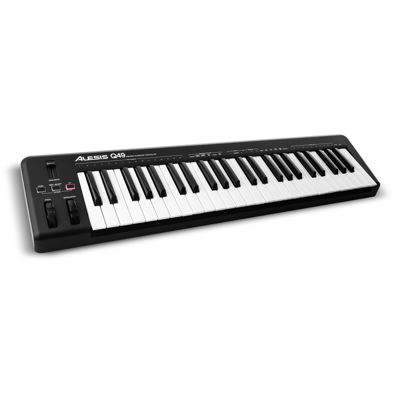 Alesis Q49 обеспечивает клавишникам полный набор элементов управления, в том числе колеса высоты и модуляции, кнопки понижения и повышения октавы, перестраиваемый слайдер и возможность управления программой с помощью клавиш.