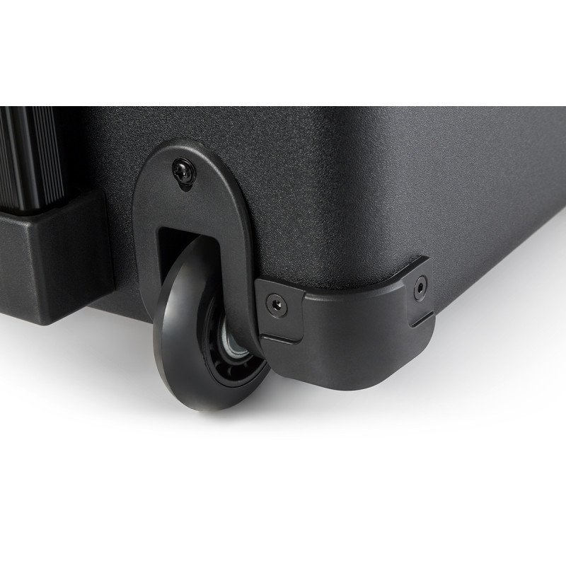 Стоит сказать, что помимо звукоусиления, рассматриваемая система обладает вмонтированной светомузыкой, для оперативной настройки которой в наличии имеются клавиши изменения расцветки, а также клавиши изменения режима функционирования системы. Для транспортирования в распоряжении пользователя имеются эргономичная ручка выдвигающегося плана, а также колесики, размещенные снизу устройства (их расположение аналогично расположению колесиков у стандартного дорожного чемодана).