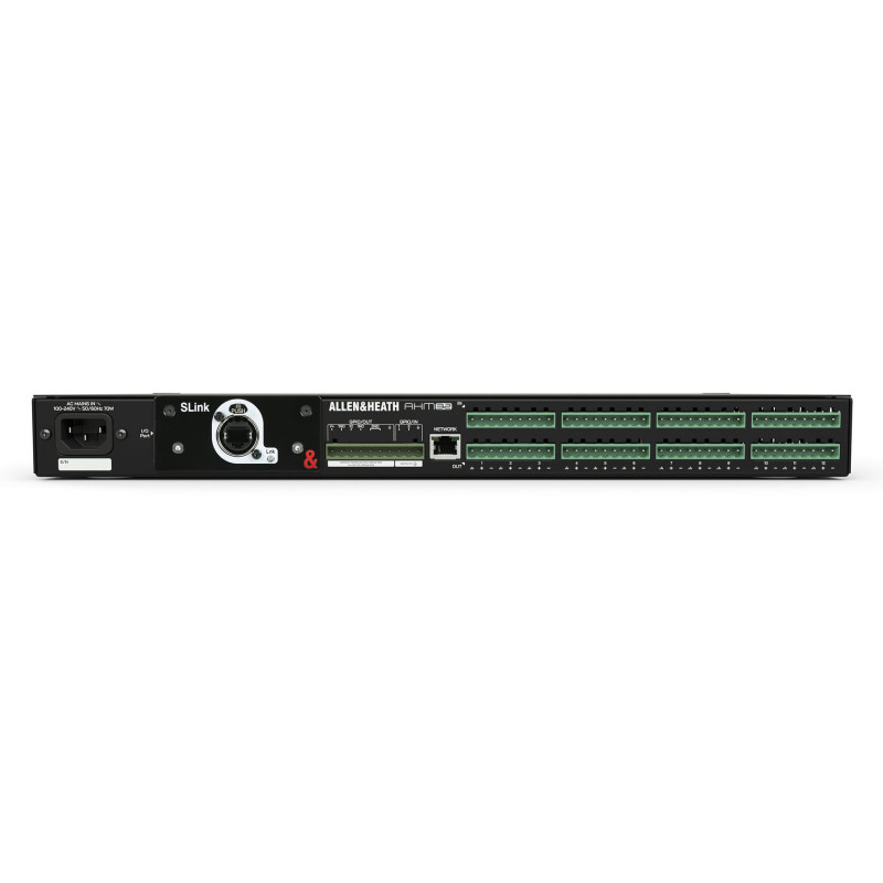 Процессор совместим с экосистемой Allen & Heath, включающей в себя устройства для расширения конфигурации входов/выходов, опции управления и решения Dante. Модель создана на базе матричного аудиопроцессора Allen & Heath AHM-64. Это надежная основа для широкого спектра инсталляционных решений, от единичного конференц-зала до целого кампуса. Модель обеспечивает пользователям простоту программирования и управления, а также возможности расширения конфигурации входов/выходов и использования сетевых стандартов передачи аудио. AHM-32 обеспечивает обработку 32х32 и имеет 12 аналоговых входов и выходов, он станет отличным решением для многозонных инсталляций в гостиничном, корпоративном и образовательном секторах. Для процессора доступен опциональный модуль подавления акустического эха (AEC), который будет полезен для теле- и видеоконференций. Процессор имеет порт 96 кГц для модулей расширения. Он позволяет установить карту 64x64 Dante для интеграции процессора в сеть Dante и подключения к нему устройств расширения входов/выходов Allen & Heath, поддерживающих Dante. Также в данный порт можно установить карту SLink для plug-and-play подключения устройств экосистемы Allen & Heath Everything I/O. Модель поддерживает удаленное управление, в том числе при помощи PoE контроллеров и мобильного приложения Custom Control. Процессор предлагает богатый набор инструментов обработки, включая автоматический микрофонный микшер, компенсацию окружающего шума, приоритетный дакер и 8-полосный параметрический эквалайзер на каждом входе и зонном выходе, а также обработку для акустических систем.