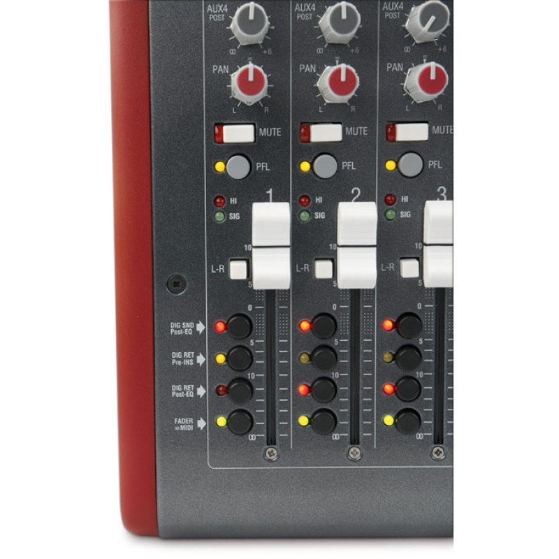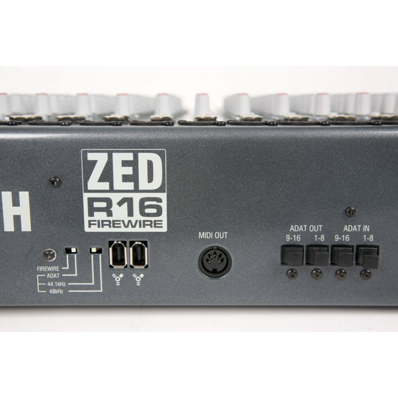 16 моно, 2 стерео, микрофонный предусилитель, 4 AUX, 4-полосный полностью параметрический эквалайзер, стереошина, встроенные звуковые карты - FireWire (по 18 входов и выходов) и ADAT (по 8 входов и выходов).