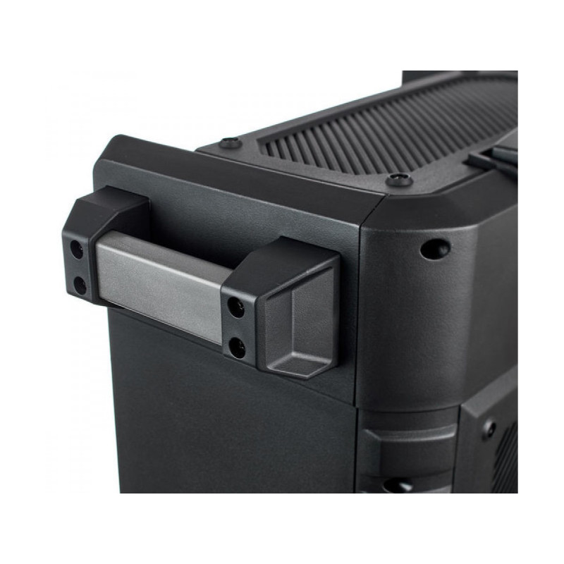 Кроме того, корпус системы оснащен встроенной телескопической ручкой и колесиками для транспортировки.