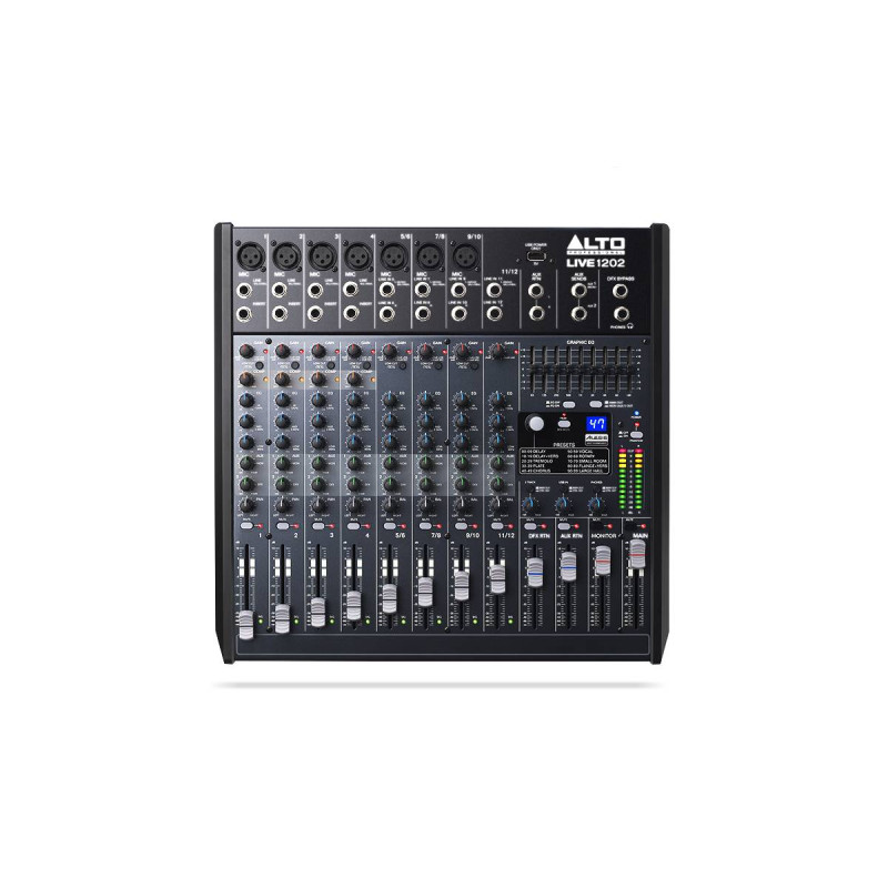 Микшер имеет в своем наборе известные пользователям разного профессионального уровня компоненты и функции, предлагая все, что может быть важно для работы со звуком на концертах и разнообразных презентациях. Использование микшера одинаково комфортно как для пользователей начального, так и профессионального уровня. Есть две AUX-шины с переключателями pre/post, USB-интерфейс для подключения и взаимодействия с персональным компьютером или ноутбуком. Блок питания микшера встроенный. Если Вы желаете купить компактный аналоговый микшер, Alto Live 1202 предлагает идеальное сочетание высококачественных комплектующих, широкие возможности работы и функций, а также современный дизайн профессионального класса от компании Alto.