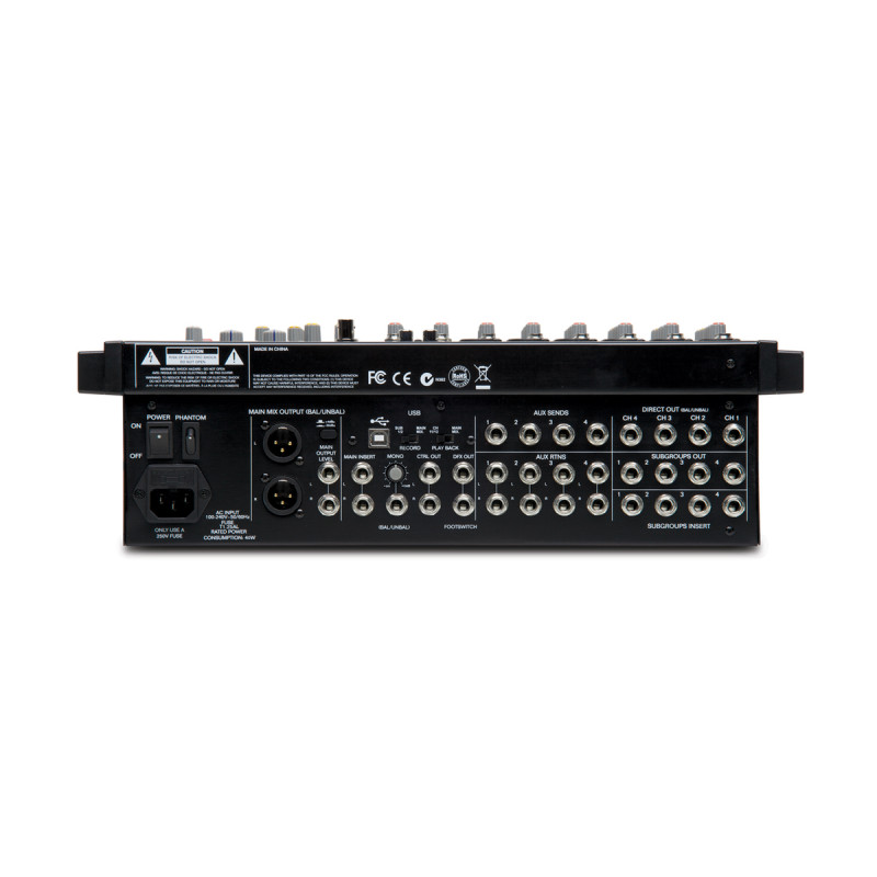 Точно так же, как и профессиональные микшерные консоли, компактный микшер Alto ZMX124FXU имеет встроенную систему фантомного питания (Phantom Power). Фантомное питание предназначено для корректной работы студийных конденсаторных микрофонов. Теперь используя портативные аналоговые микшеры можно подключать к ним высококачественные конденсаторные микрофоны, что расширяет возможности эксплуатации компактных микшеров.