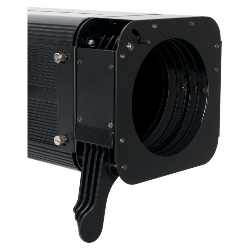 Оснащенный мощным COB-светодиодом мощностью 300 Вт, 6000к, и индексом цветопередачи 95,5. Мощный прожектор идеально подходит для слежения за исполнителями на концертных и театральных сценах. Он оснащен цифровым затемнением, регулируемым вручную углом луча от 13° до 32°, диафрагмой, ручной фокусировкой и слотом GOBO. Прибор поддерживает как DMX, так и ИК-пульт дистанционного управления, а интуитивно понятный сенсорный интерфейс на задней панели облегчает адресацию DMX и выбор режима. Кроме того, удобный поворотный регулятор яркости на задней панели облегчает ручное управление, а две большие задние рукоятки обеспечивают удобное ручное позиционирование.