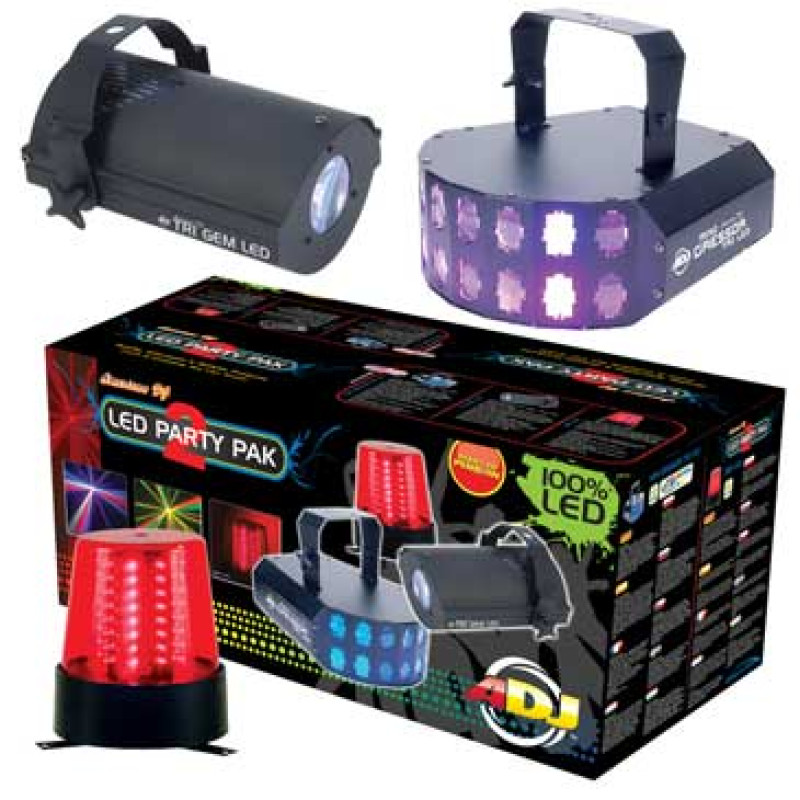 American Dj LED Party Pak 2 комплект светодиодных приборов: MINI GRESSOR TRI LED, an TRI GEM LED and an LED BEACON RED.