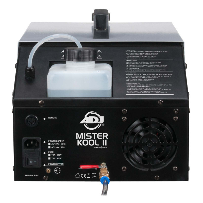 AMERICAN DJ MISTER KOOL II Генератор дыма, использующий стандартные дым-жидкости и кубики льда. Не нуждается в дорогих кондиционерах, громоздких воздушных охладителях или сухом льде. Имеет дистанционное управление, способен вмещать до 2 кг льда в охлаждающую камеру, простота очистки водяной системы, сток жидкости в пластиковый мешок.