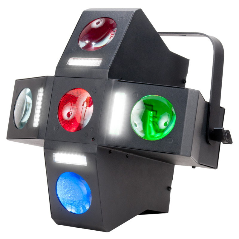 Monster Fun от American DJ – это 2 мощных устройства в одном: DMX LED Moonflower + стробоскоп с 5 линзами и 4 стробоскопическими лентами. Устройство имеет 25 красных, синих, зеленых, белых и янтарных светодиодов мощностью 1 Вт. Это устройство предлагает небольшим клубам, музыкальным группам, роликовым каткам и мобильным артистам возможность удобного создания множества эффектов в одном световом шоу без необходимости транспортировки множества устройств. 8 встроенных световых шоу помогут сделать ярким любое мероприятие.