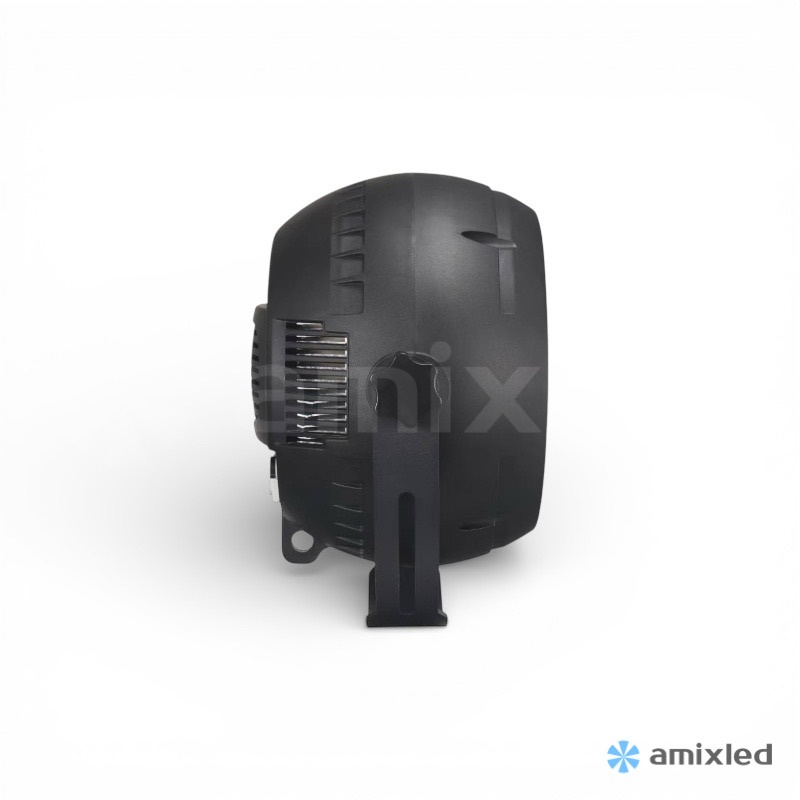Светодиодный блайндер, оформленный в ретро-стиле. Имеет основной 200Вт диод и подсветку из 16RGB диодов по 3Вт. Обладает достаточной мощностью, чтобы работать даже в составе небольших групп приборов, а в большом количестве способен качественно ослеплять даже большие площадки, в том числе и уличные, благодаря влагозащите IP65.
