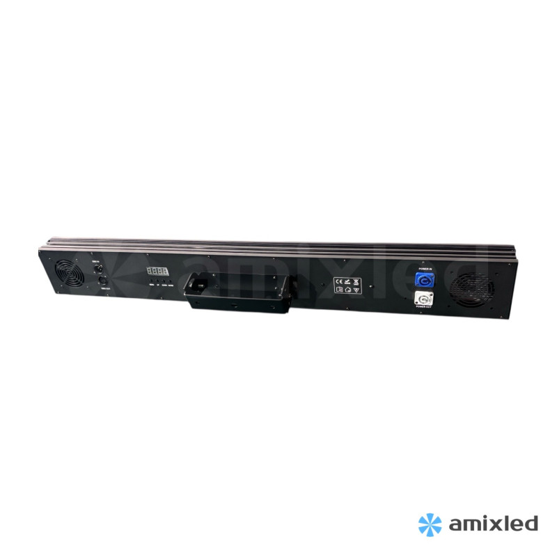 Линейный светодиодный прибор, впечатляющий количеством возможностей. По сути - небольшой /9экран, способный показать огромное количество световых картин при контровом размещении и быть неплохим линейным прожектором в любых прочих случаях. Мощности достаточно для освещения небольших и даже средних сцен.