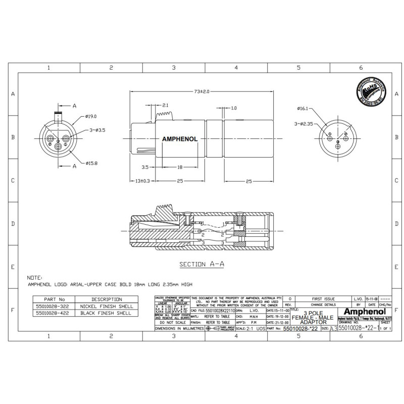 Переходники XLR-XLR Amphenol AC3F3MBW
