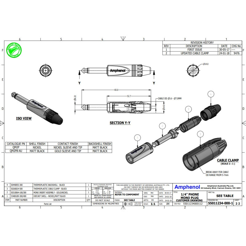 - Модель:Кабельный разъем mono jack 6.3 мм