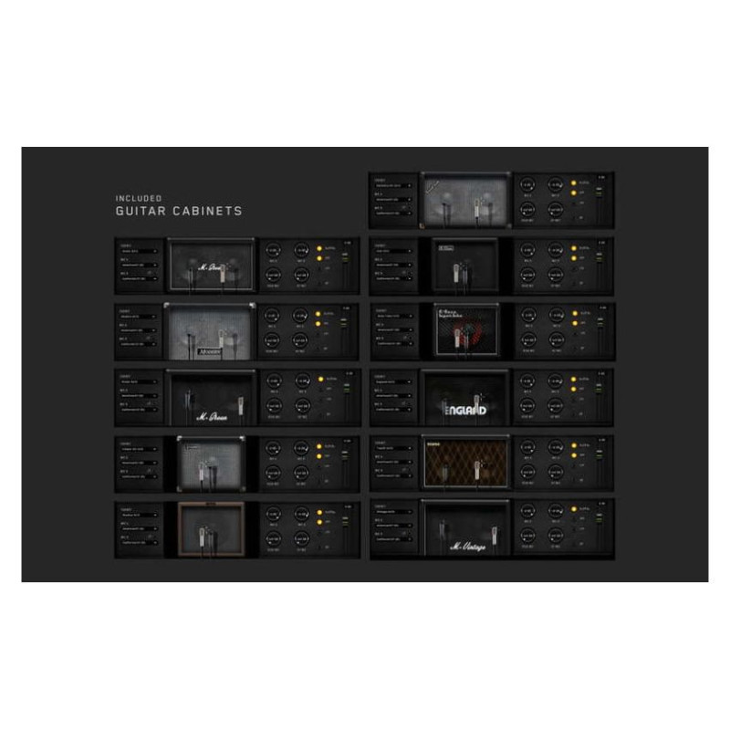 Гитара/бас: Bass SuperTube VR, Bass Tube 1x15, Bluelux 1x12, BurnSphere (DE) Lead, Clst 1x12, Caliper 50 1x10, Darkface 65 2x12, Darkface 65 (US), England 4x12, Green 2x12, Green 4x12, Marcus II (US) Lead, Modern 4x12, Modern (US) CH3, Overange 120 (UK), Plexi 59 (UK), Rock 22.10 (UK), Rock 75 (UK), Top30 2x12, Top30 (UK) Bright, Tweed Deluxe (US) Vintage 4x12;