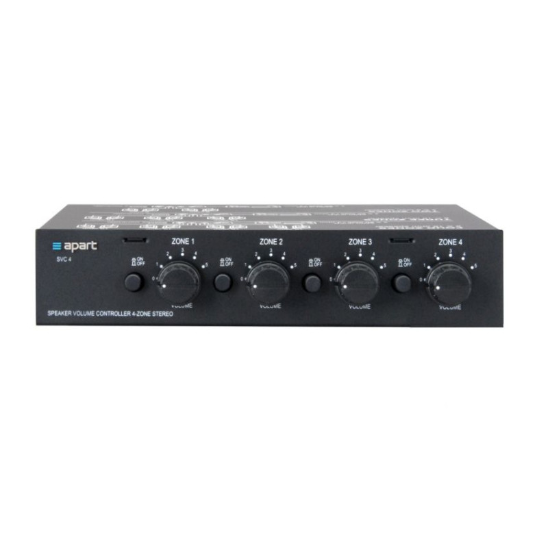SVC4 является устройством настольного исполнения, подключается к низкоимпедансным выходам профессиональных усилителей мощности для передачи стереозвука на четыре озвучиваемых зоны.
