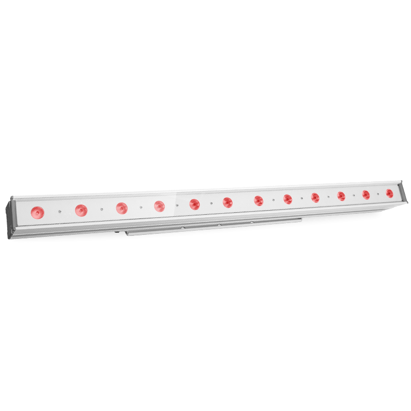 ARC COLOR Wash 124 RGBW светодиодный линейный всепогодный прожектор для архитектурной подсветки фасадов зданий, карнизов, колонн, декоративного освещения мостов, переходов, туннелей, цветной заливки рекламных щитов и других поверхностей. Расширенный цветовой диапазон. Может работать как в статичном, так и в динамическом режиме. В качестве вторичной оптики ARC Color Wash 124 RGBW, используются линзы Френеля с углом раскрытия от 10° до 60° (определяется при заказе), обеспечивающие превосходное смешение цветов и равномерный световой поток. Прибор выполнен в корпусе из анодированного алюминия, с каленым защитным стеклом и качественной фурнитурой из нержавеющей стали. Прожектор комплектуются двумя поворотными кронштейнами, обеспечивающими регулировку угла наклона от 0 до 180°. В качестве дополнительных опций корпус прибора может быть окрашен порошковой краской, а также обеспечена возможность подключения шлейфом.