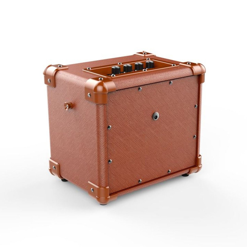 Комбоусилитель для акустической гитары 10 В. Питание осуществляется при помощи блока питания в комплекте или от 6 штук AA батарей. Тем не менее, этот усилитель гарантирует долгую работу при экстремальных выступлениях на сцене. Пятидюймовый динамик обеспечивает превосходное звучание для слушателей, а наличие линейного входа позволяет подключать к нему такие устройства, как смартфон или mp3-плеер. Функция записи, возможность подключения микрофона, карт памяти Micro SD и USB Flash.