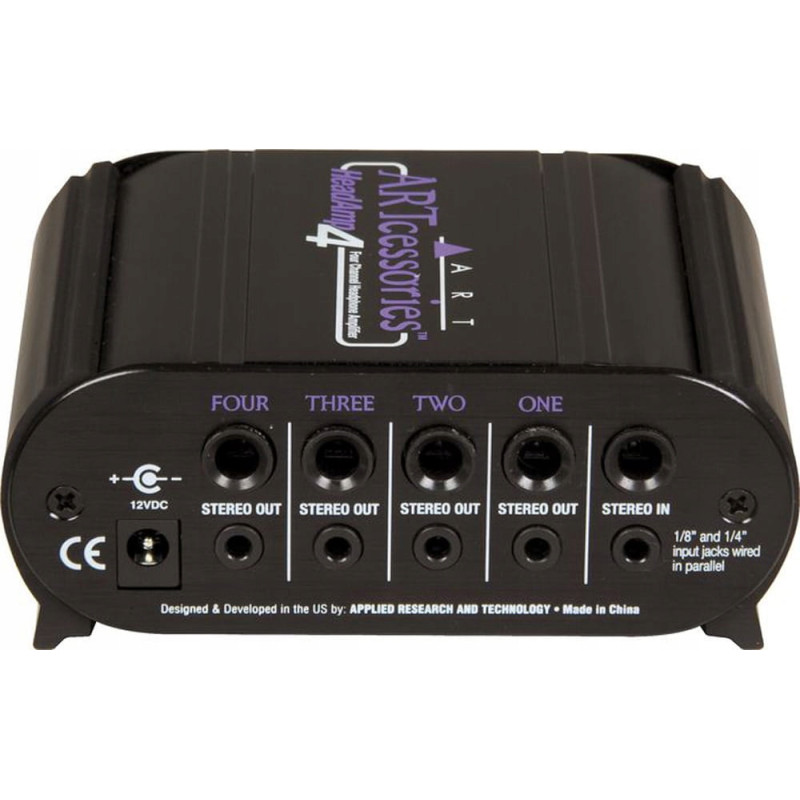 ART HeadAMP 4 Усилитель для наушников в обновленном корпусе с входами и выходами 1/4" (jack) и 1/8"(mini-jack) и индивидуальными регуляторами громкости для каждого из четырех выходов. Обеспечивает низкий уровень шума и искажений, идеален для почти любой домашней или project-студии.