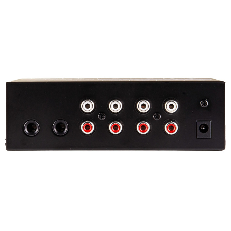 - Четыре входных канала, каналы 1 и 2 имеют парные симметричные моно входы (разъем RCA), в канале 3 вы можете выбрать между парными симметричными моно входами (разъем RCA) или аналоговым входом (разъем 1/4" джек), канал 4 имеет небалансный аналоговый вход (разъем 1/4" джек).