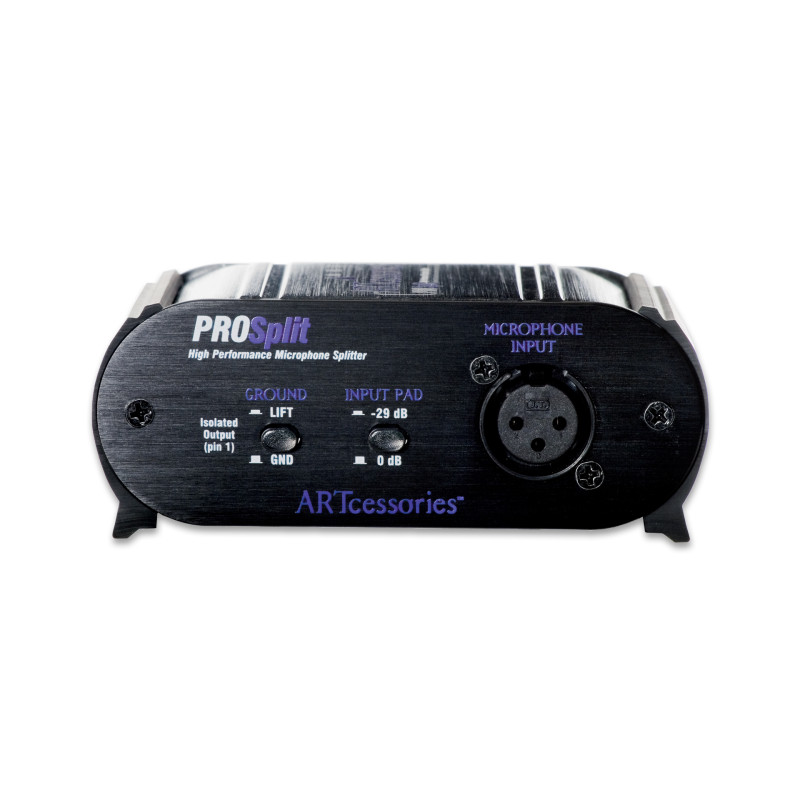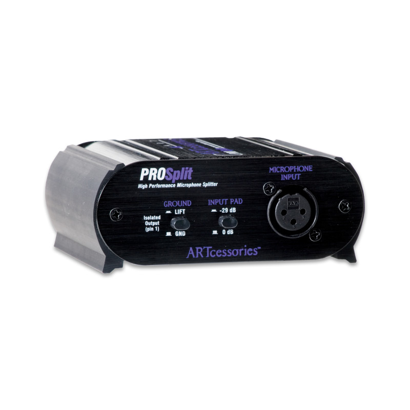 ProSplit позволяет создать один директ-выход и один изолированный выход трансформатора от единственного микрофона. С помощью приложений директ-выход может быть подан на главный микшер, а второй изолированный выходной сигнал будет послан на монитор или записывающий микшер. Директ-выход пропускает фантомное питание главного микшера на микрофон для использования с конденсаторными микрофонами.